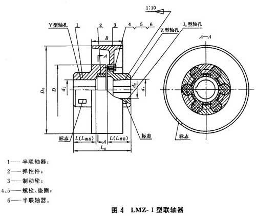 LMZ-I型分體式制動(dòng)輪型梅花聯(lián)軸器是由兩個(gè)帶凸爪形狀相同的半聯(lián)軸器和制動(dòng)輪及彈性元件組成,利用梅花形彈性元件置于兩半聯(lián)軸器凸爪之間,以實(shí)現(xiàn)兩半聯(lián)軸器的聯(lián)接。